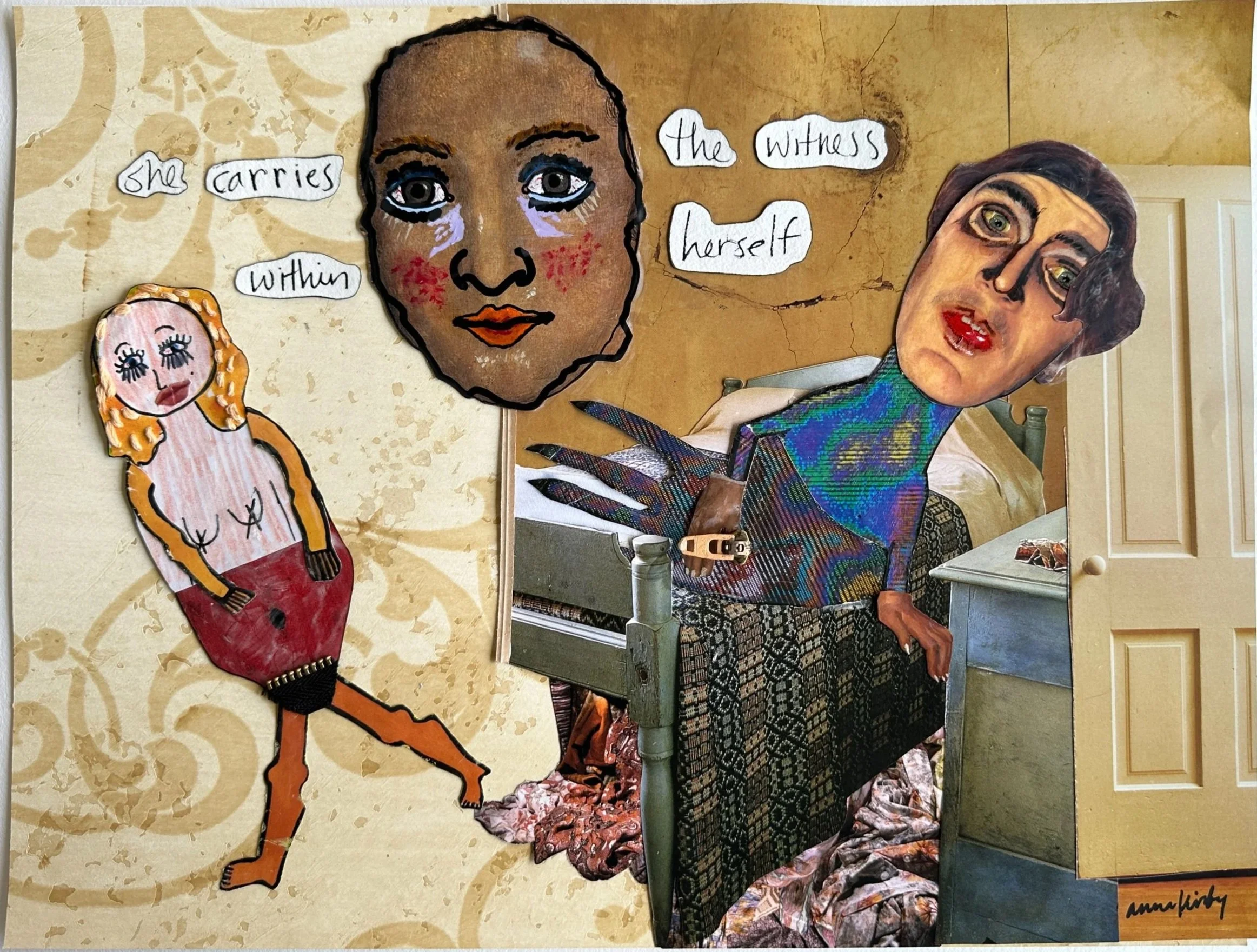 Anna Kirby resurrects forgotten faces. Working from the remnants of other people's libraries, she assembles composite portraits from mismatched photographs, illustrations, and paintings — then transforms them with oil paint, adding makeup and face paint in colors that have no interest in being subtle. The result is a figure that never existed, yet feels achingly real.Her work is rooted in the emotional realities of female experience: PTSD, abuse, child loss, infertility, and the contested terrain of identity. The portraits are expressive and unflinching, capturing a range of emotion from quiet discomfort to defiant resilience.Kirby is based in North Carolina. Her work has been exhibited nationally and published in over twenty literary magazines and journals. She completed a residency with Kolaj Magazine in New Orleans in 2025.